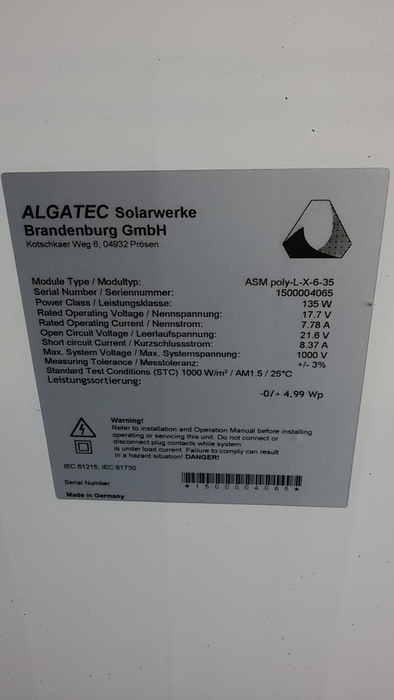 Wir weisen ausdrücklich darauf hin, dass wir von Seiten SecondSol keine Leistungsgarantien geben können. Die Module sind alle plussortiert - Flashlisten werden mitgeliefert. Der Hersteller gibt eine Produktgarantie von 25 Jahren ab Nachbaudatum nach Herstellervorgaben.