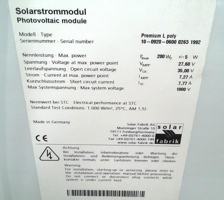 Solarfabrik Premium L Poly 200Wp / Solar Fabrik Premium L / Solar-Fabrik Premium L