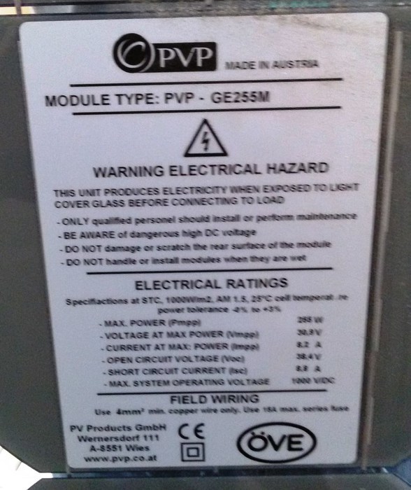 Das PVP GE255M ist ein monokristallines Solarmodul mit 255Wp