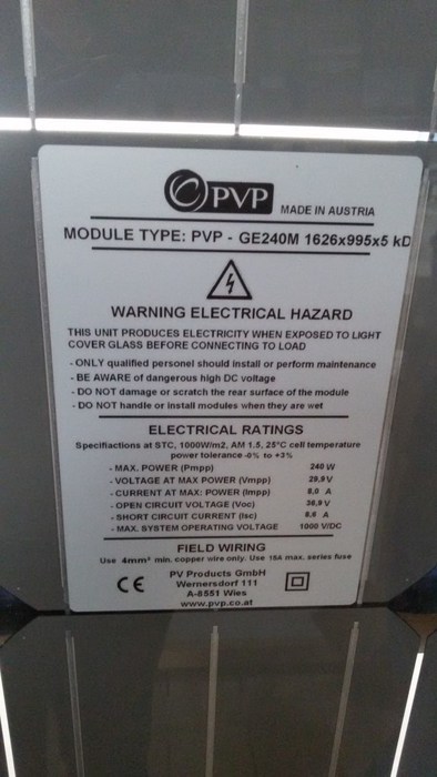 Das PVP - GE240M ist ein monokristallines Solarmodul mit 240Wp