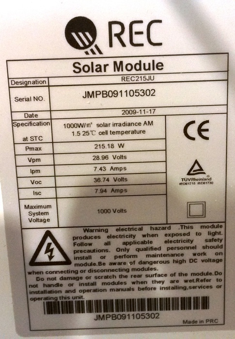 REC Solar REC 215JU / REC 215 JU
