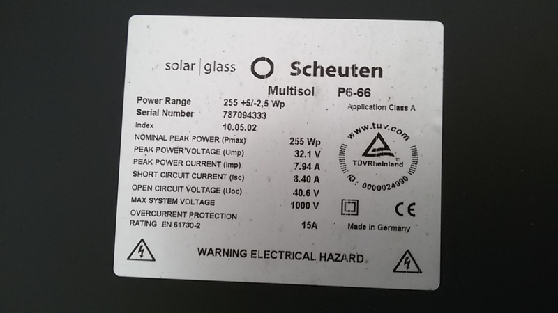 Es handelt sich um kurzzeitig gebrauchte PV-Module, welche in einem renomierten Testcenter getestet wurden und die Anschlussdosen nach Scheuten-Vorgabe gewechselt wurden. Die Module sind max. minus 3% / plus 2% sortiert.