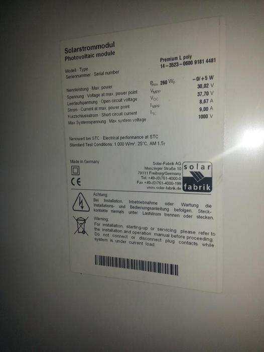 Es handelt sich um gebrauchte Module, welche in einem zertifizierten Testcenter überprüft, gereinigt und geflasht wurden. Bei den Modulen wurden die Bypass-Dioden ausgewechselt. Die Module sind leistungstechnisch völlig in Ordnung.