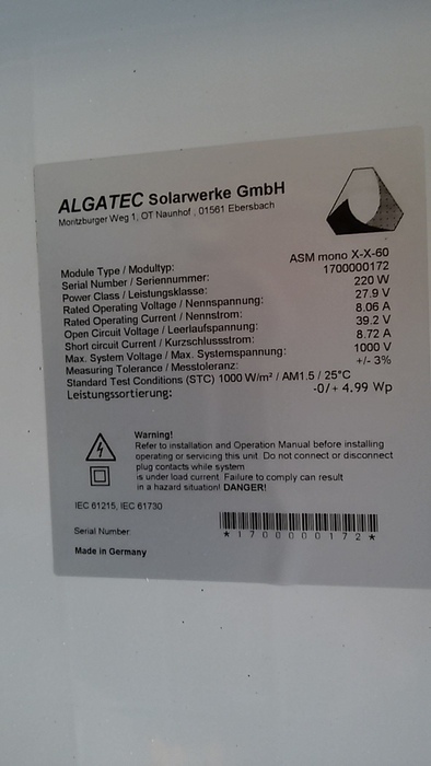 Modulnachbau Solon M180/6  -  Solon M180 / 6 220Wp
