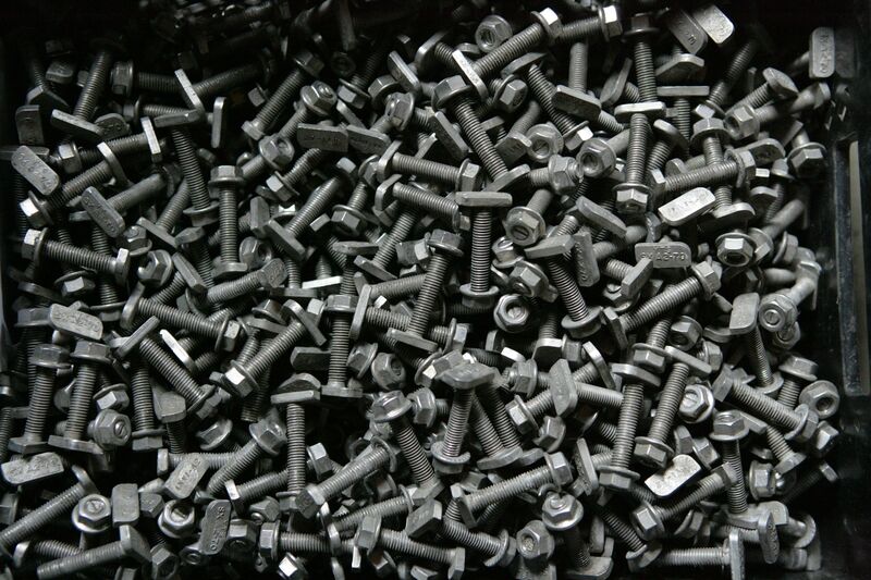 Gewinde von Schraube und Mutter wurde von einem Menschen kontrolliert.