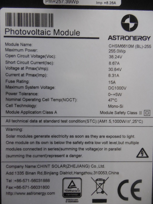 PV-Module / Mono / Astronergy / Chi ... - CHSM6610M (BL)-255