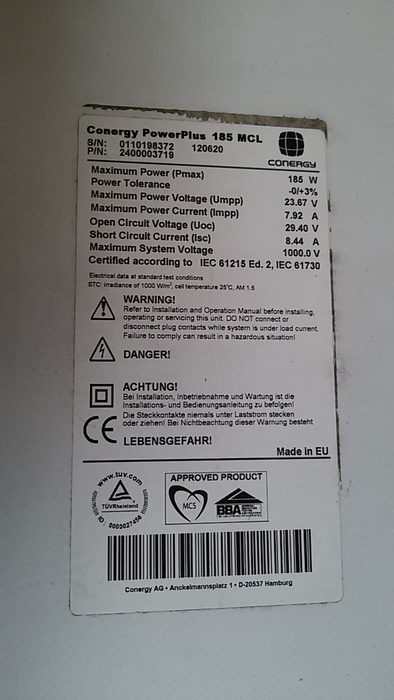 Conergy PowerPlus 185 MCL / Conergy PowerPlus 185MCL / Conergy Power Plus 185MCL