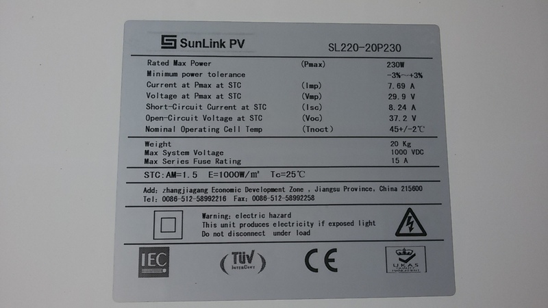 Das SunLink SL220-20P230 ist ein polykristallines Solarmodul mit 230 Wp.