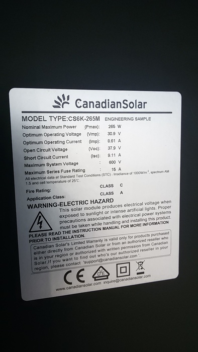 Weitere technische Informationen entnehmen Sie bitte den Datenblättern von Canadian Solar. Diese finden Sie auf der Homepage des Herstellers unter Downloads oder im Internet. (https://www.canadiansolar.com/downloads)