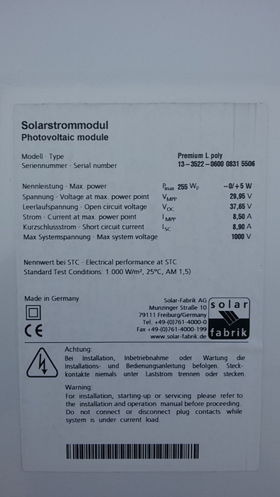 Solarfabrik Premium L Poly 255Wp / SolarFabrik Premium L Poly