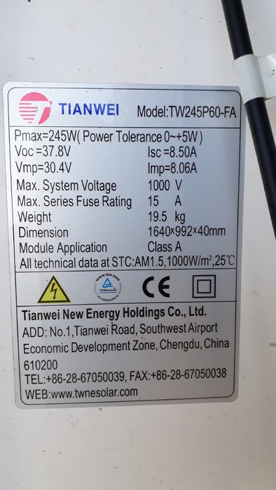 Das Tianwei TW245P60-FA ist ein polykristallines Solarmodul mit 245Wp.