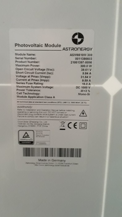 Bei den PV-Modulen handelt es sich um Restposten. Der Verkauf an Unternehmer erfolgt unter Ausschluss jeglicher Sachmängelhaftung. Beim Verkauf an Verbraucher verjähren die gesetzlichen Sachmängelansprüche in einem Jahr ab der Übergabe der Sache. Die Haftung für Schäden aus der Verletzung des Lebens, des Körpers oder der Gesundheit sowie für sonstige Schäden, die auf grob fahrlässiger oder vorsätzlicher Pflichtverletzung beruhen, bleibt unberührt.