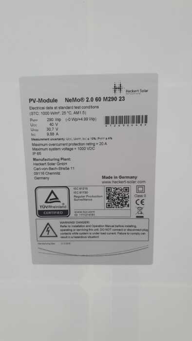 Heckert Solar NeMo 2.0 60M 290 AR (A) 23+ 290Wp / Heckert Solar NeMo 2.0 60 M 290 AR (A)23+ 290Wp