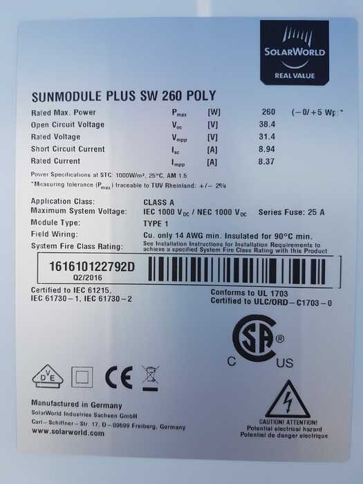 SolarWorld SW PL 260 poly SV / Solarworld SW PL260 poly SV