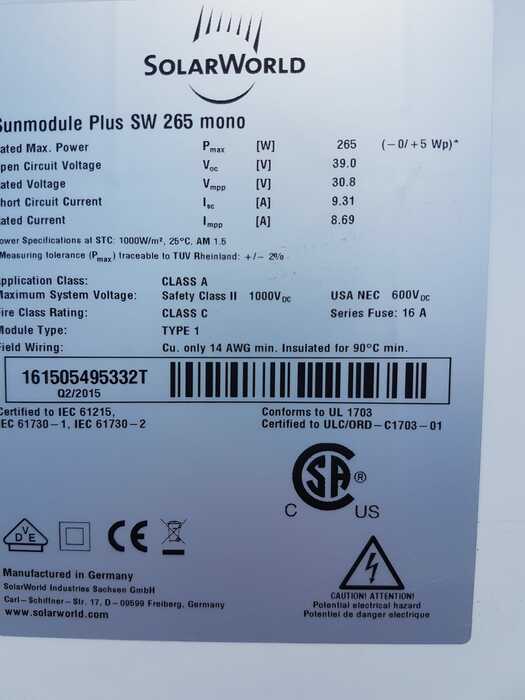 SolarWorld SW PL 265 mono SV / Solarworld SW PL265 mono SV