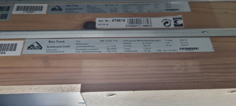 Roto Sunroof Photovoltaik-Modul SRP 1x1 10/20 270Wp / Solarwatt M270-72 GET LK