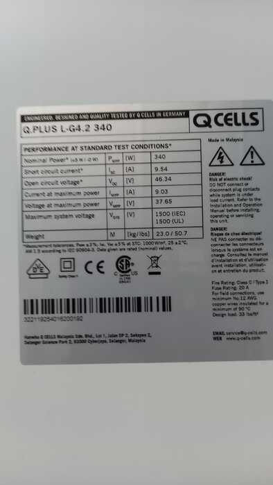 Hanwha Q.Cells Q.Plus L-G4.2.0 A F 340Wp / Hanwha Q.Cells Q.Plus L G 4.2.0 AF 340Wp