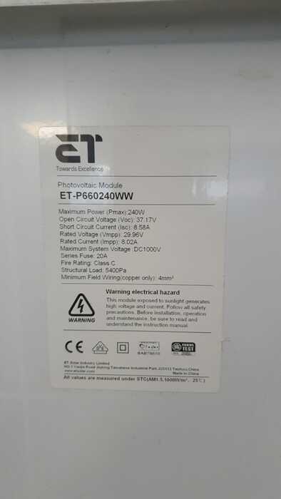 Das ET-Solar ET-P660240WW ist ein polykristallines Solarmodul.