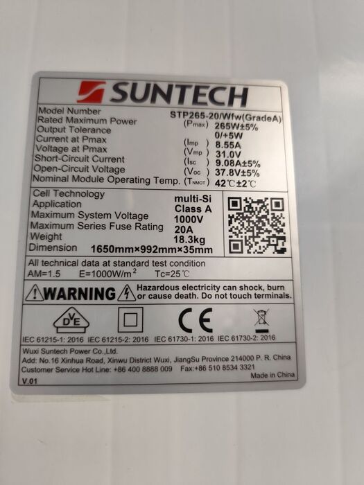 Das Suntech STP265-20/Wfw ist ein polykristallines Solarmodul mit 265 Wp