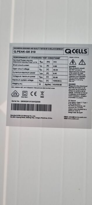 Hanwha Q.Cells Q.Peak G5 310Wp / Hanwha QCells Q.Peak-G5 310Wp / Hanwha Q-Cells QPeak G5 310Wp