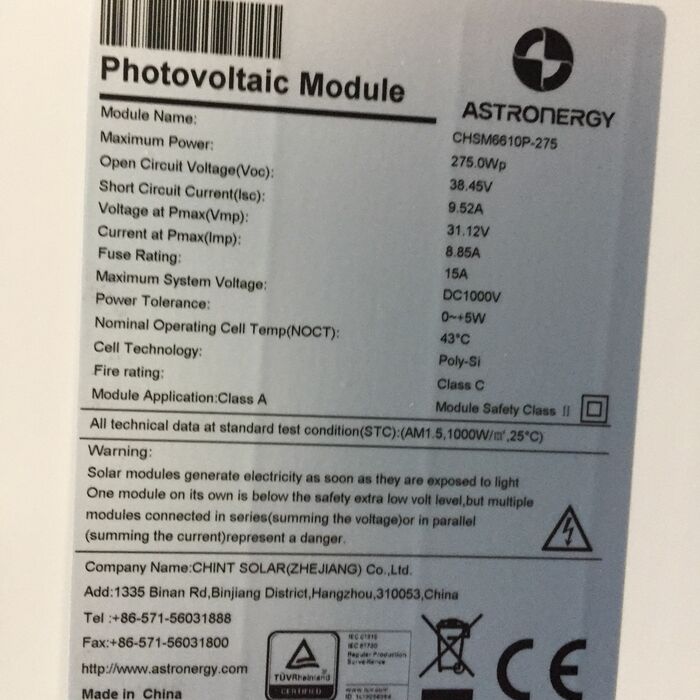Astronergy CHSM6610P-275 275Wp / Astronergy CHSM 6610P 275 275 Wp