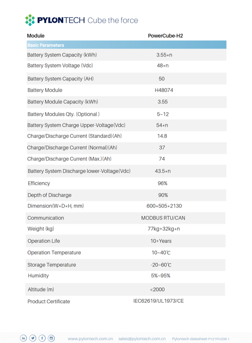 Pylontech Powercube-X2/H2 H48074 3,55KWh LiFePO4 Hochvolt passend für Goodwe/Solax/Solis/Growatt/SofarSolar/Sungrow u.v.m.