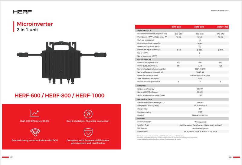 HERF-800 EU 800W Mikrowechselrichter (inkl. AC/Endkappe)