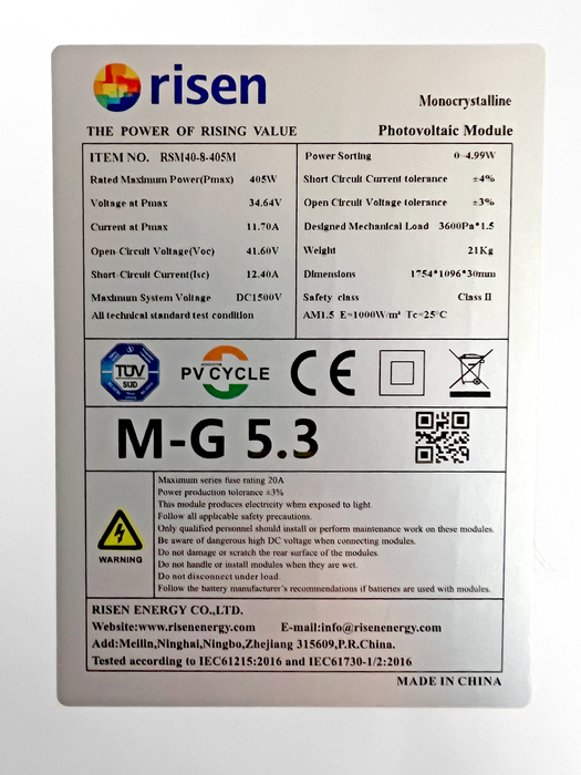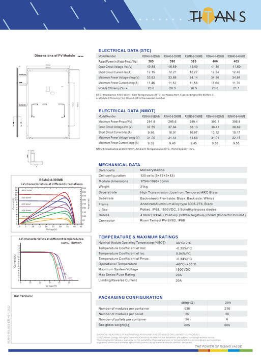 Risen Titan S 405 W - schwarzer Rahmen - Tier 1, 21,1 % Max. Wirkungsgrad - AUF LAGER!!!