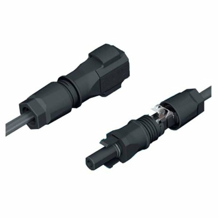 Photovoltaik-Adapterset und Steckverbinder zur optimalen Verbindung von PV-Anlagen. Der Steckverbinder lässt sich ohne Spezialwerkzeug schnell, einfach und sicher anschließen.