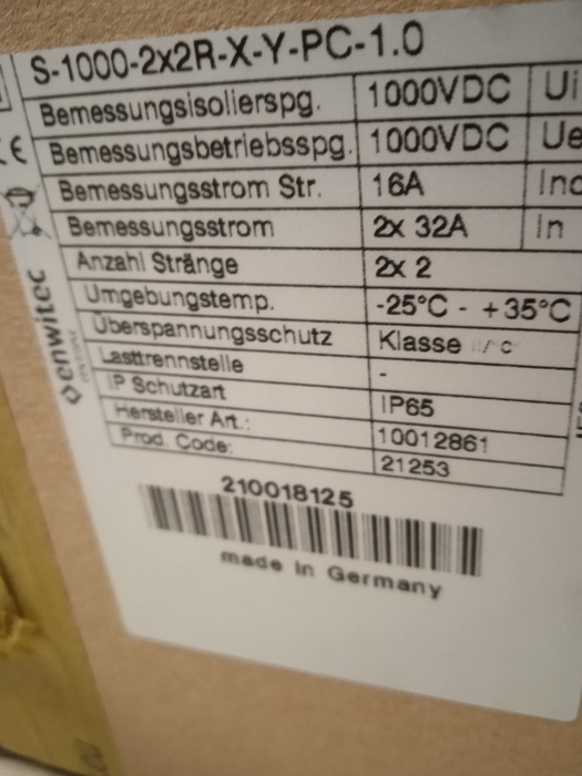 enwitec Überspannungsschutz DC Typ II, 2 MPPT, Klemmen