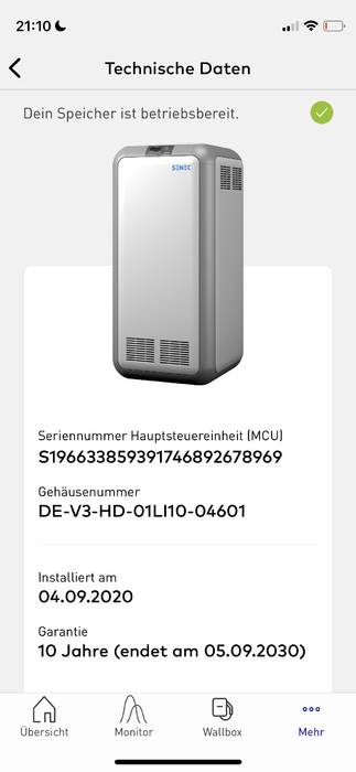 Installationsdatum: 04. September 2020, Kapazität: 10 KWh
