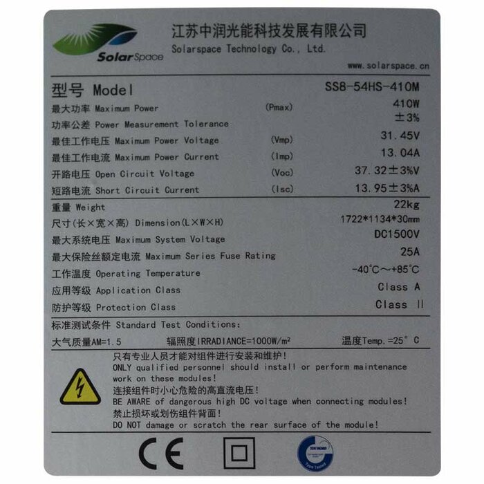 Solarspace Jupiter 410 Watt mono SS8-54HS 410 M (1722 x 1134 x 30 mm)