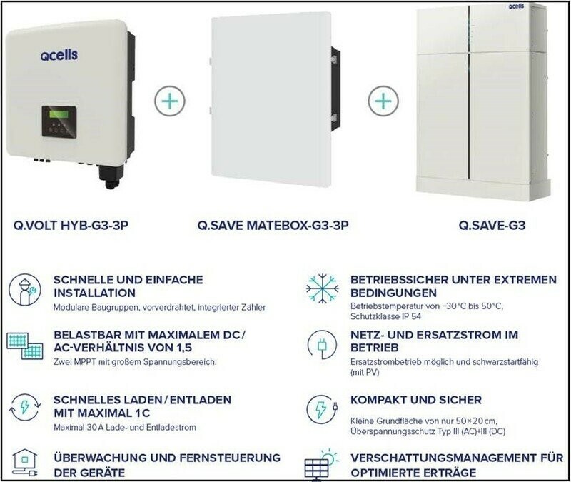 - 4 x Batteriemodul Q.SAVE BAT-G3 mit je 3,1 kW