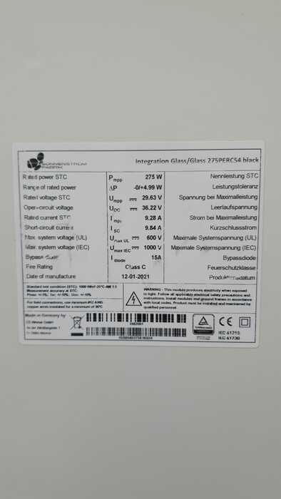 Integration Glass/Glass 275PERC54 Solrif black