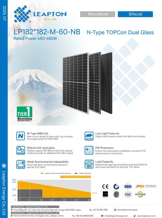 PV-Module / Bifacial / Leapton - LP182-M-60-NB 480W