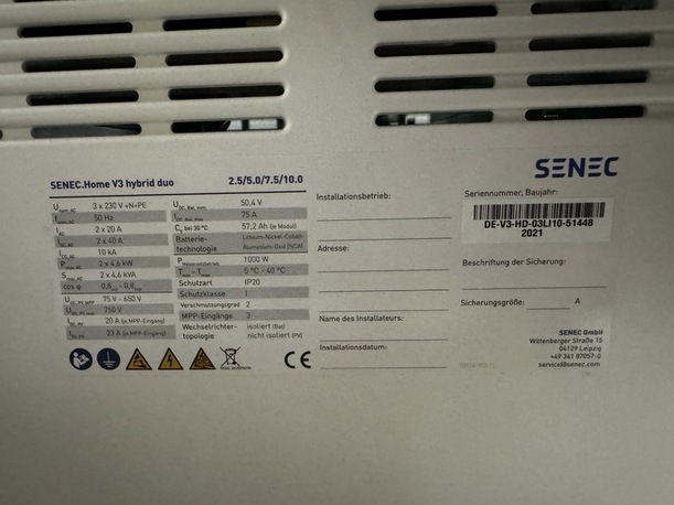 Biete einen 10kW Senec home V3 Speicher mit integrierten Hybrid Wechselrichter an