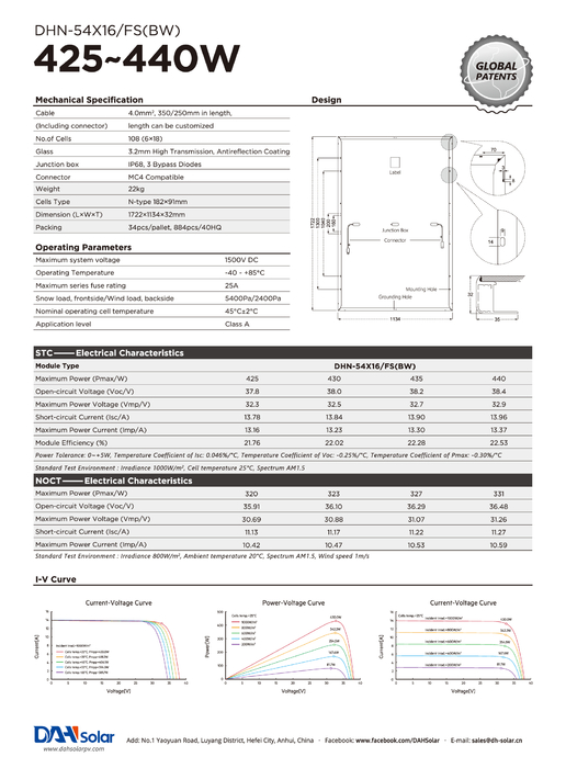 N type;Full screen;Black frame monofacial;1.25m/1.25m cable