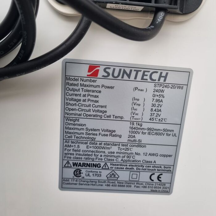 Das Suntech STP240-20/Wd ist ein polykristallines Solarmodul mit 240Wp