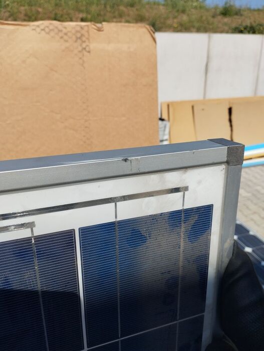 Die Module haben leichte Beschädigungen am Rahmen und Rückseite - siehe Fotos.