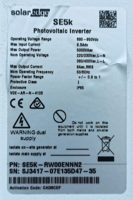 Wir verkaufen unseren SE5K Wechselrichter wegen Upgrade unserer Photovoltaikanlage. Er war 6 Jahre bei uns in Betrieb und es gab nie ein Problem. Funktioniert mit den passenden SolarEdge Leistu