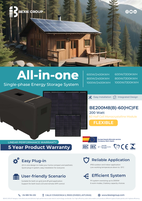 ALL-IN-ONE-Lösung: Wechselrichter + Speichersystem  + 4x200W flexible Solarmoudle