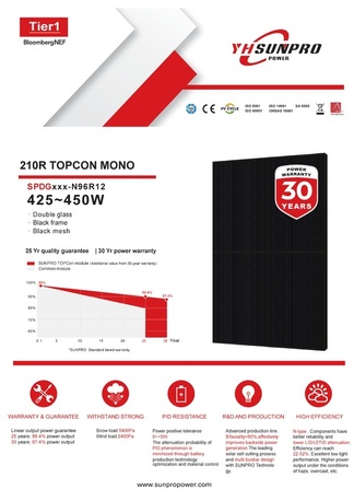 YH Sunpro Power |  SPDG450-N96R12 | 450W | Tier1 | Bifazial | 2x2mm Doppelglas | Full Black/Black Mesh