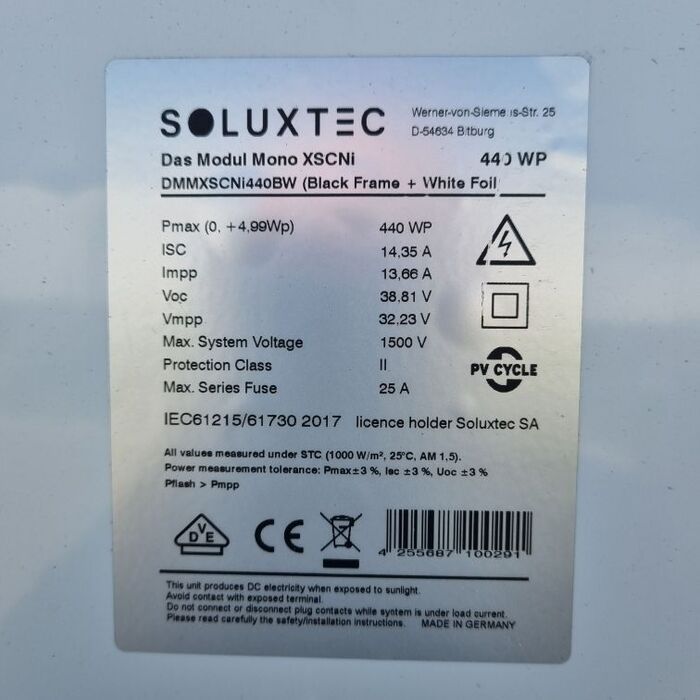 Soluxtec DMMXSCNi440 Ninside 440Wp