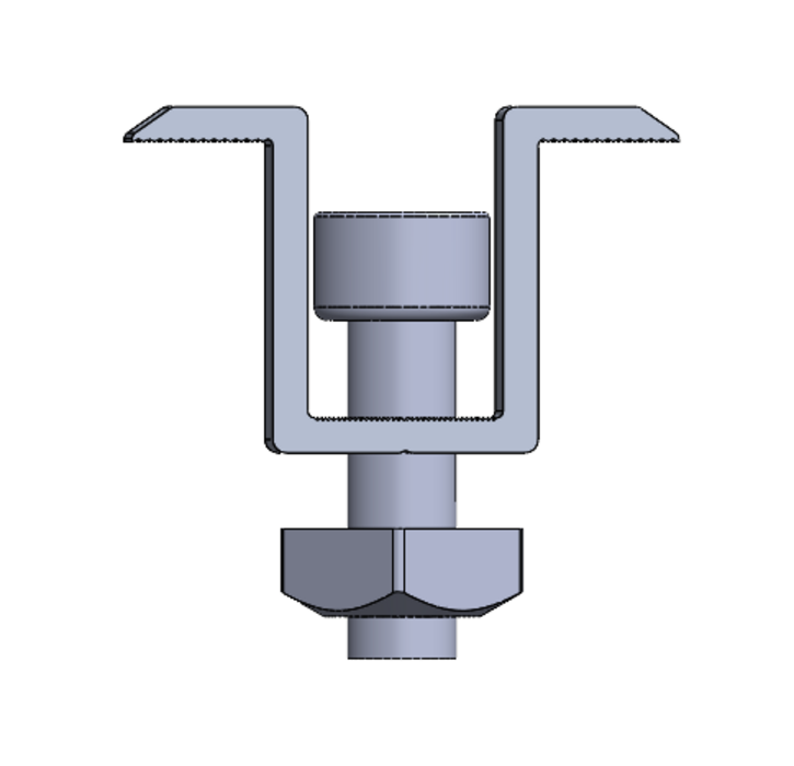Assembled middle clamp for PV modules designed for both ground and roof installations and is compatible with all PV frame types.