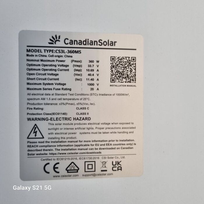 Das Canadian Solar CS3L-360MS ist ein mono-kristallines Solarmodul mit 360Wp.