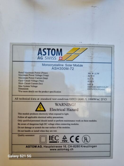 Das Modul Astom ASH 300M-72 ist ein monokristallines Modul mit 300Wp.