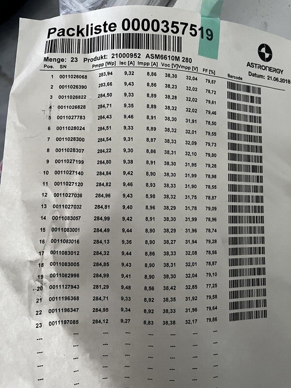 20 monokristalline Solarmodule Astroenergy ASM 6610 280