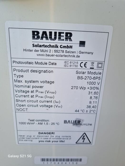 Das Modul Bauer Solar BS-270-6P5 ist ein Poly-Kristallines Modul mit 270Wp.