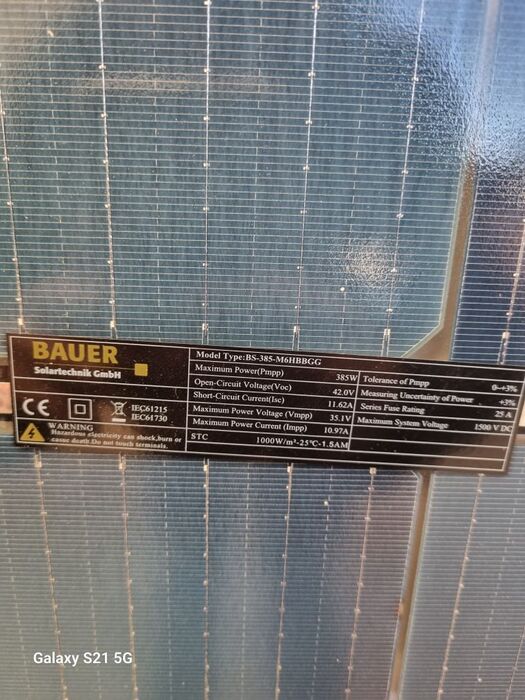 Das Modul Bauer Solar BS-385-M6HBBGG ist ein Mono-Kristallines Modul mit 385 Wp.