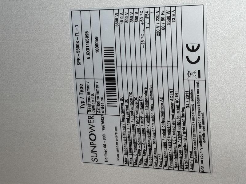 Top in Ordnung, hat mir viele Jahre treue Dienste geleistet. Da eir auf ein neues Komplettsystem mit Batteriespeicher gewechselt sind, wird der Sunpower nicht mehr benötigt.